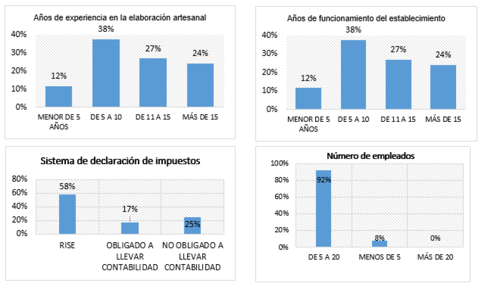 4 La figura muestra los años de experiencia, funcionamiento, sistema de declaración de impuestos y número de empleados. Datos tomados de trabajo de campo.