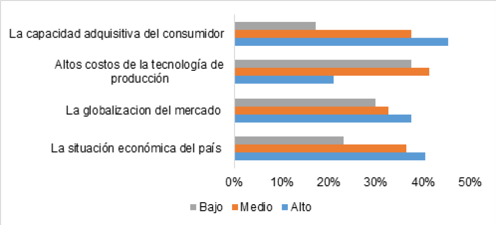 5 La figura muestra los componentes externos y su nivel de afectación al crecimiento de la microempresa textil. Tomado de la investigación de campo 2022, y las entrevistas a empresarios y expertos.