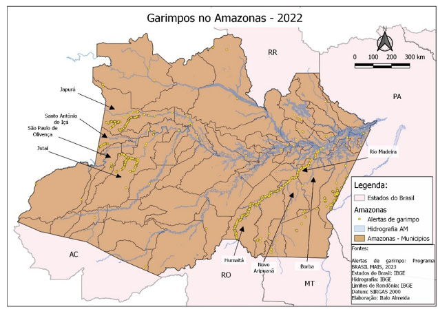 Apesar de o Amazonas apresentar algumas áreas de intensa atividade garimpeira, dados públicos da Agência Nacional de Mineração2 (ANM) indicam que existem poucas Permissões de Lavra nessa modalidade concedidas pela ANM, todas nos municípios de Humaitá, Borba, Novo Aripuanã, São Paulo de Olivença e Jutaí, o que permite concluir que ao menos parte das lavras no Amazonas ocorre de maneira ilegal, especificamente aquelas localizadas em municípios diferentes desses onde há autorização da ANM.