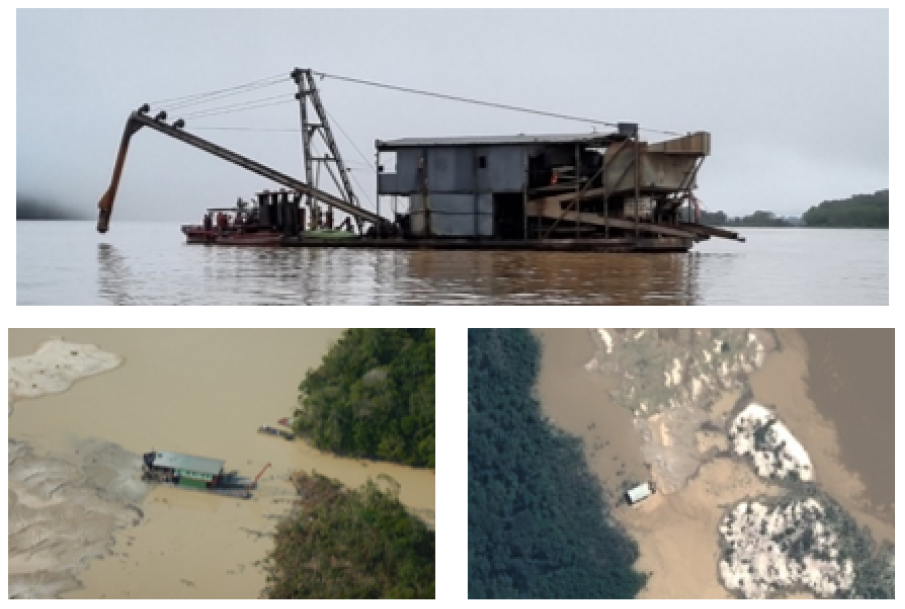 Figura 3 - Balsas metálicas em operação na ASGM amazônica