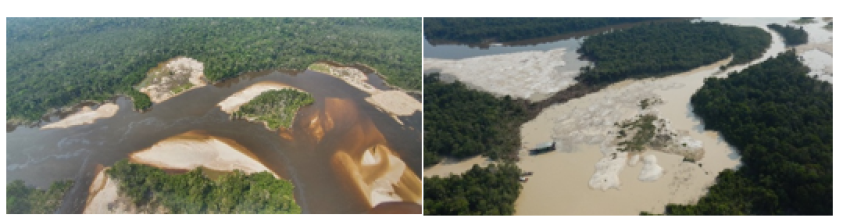 Figura 5 - Alterações ambientais provocadas pela dragagem em garimpos de ouro na Amazônia.