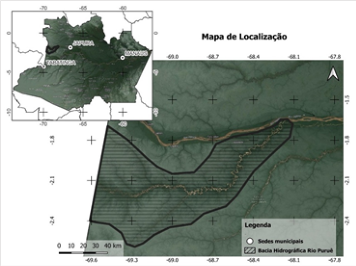 Este estudo concentrou-se no estado do Amazonas (Figura 1), a maior unidade federativa do Brasil, inserida na região da Amazônia Legal. Ferramentas e metodologias de geoprocessamento foram empregadas para identificar, mapear e delimitar as bacias hidrográficas com maior incidência de ASGM ao longo do período estudado.