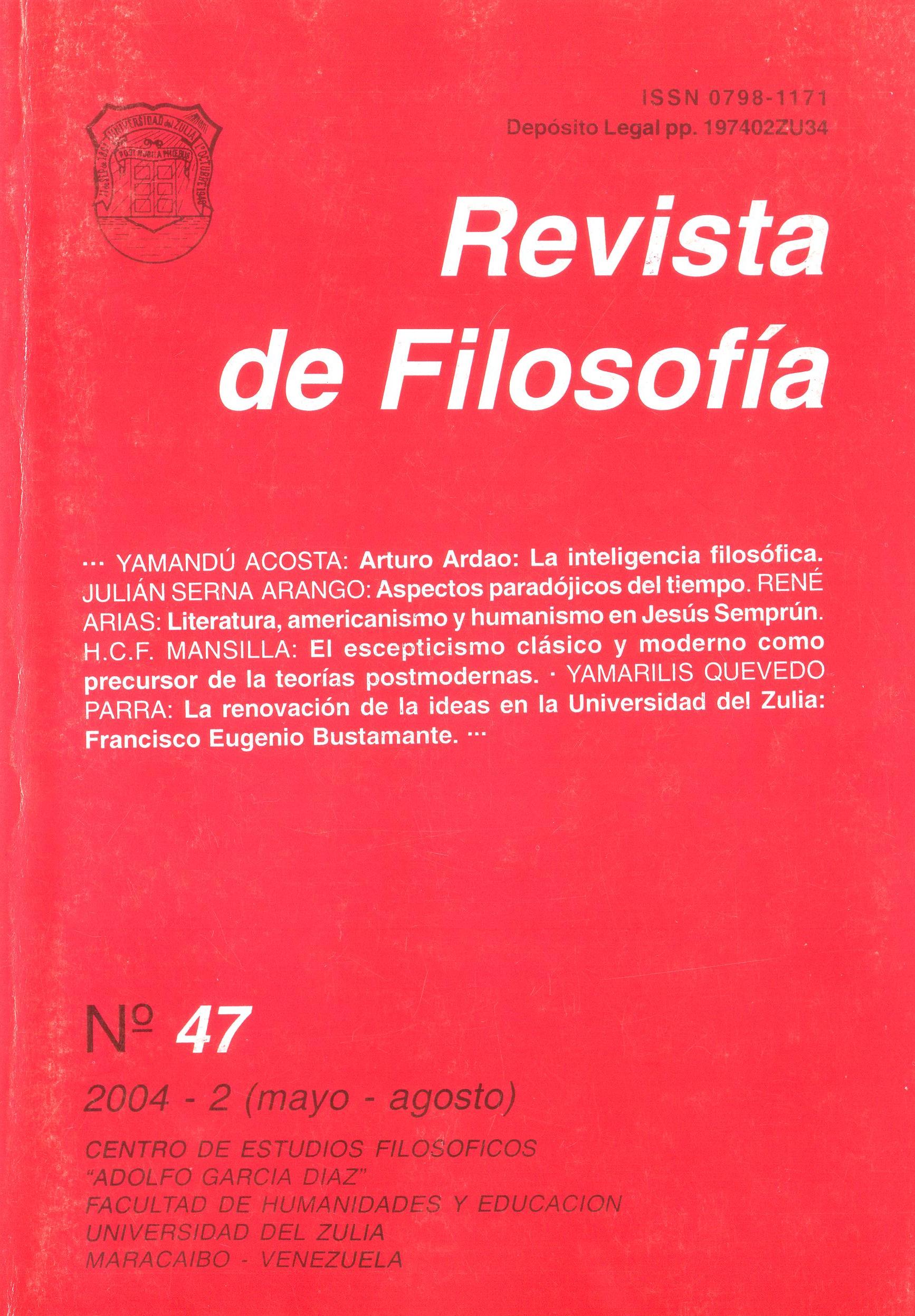 Acosta, Y. (1). Arturo Ardao: La inteligencia filosófica. Revista De Filosofía, 21(47). Recuperado a partir de http://mail.produccioncientificaluz.org/index.php/filosofia/article/view/18075