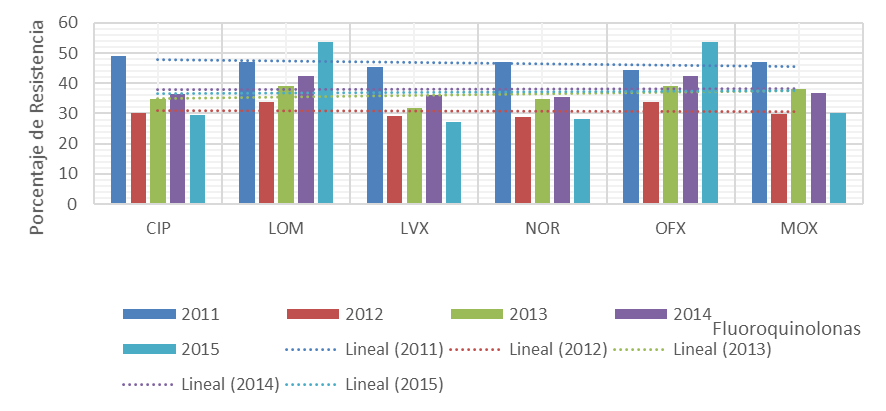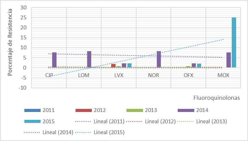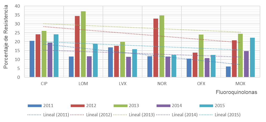 cada género bacteriano fue diferente. La resistencia a las fluoroquinolonas