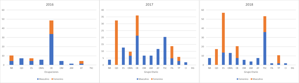 16,68%). The main occupation for 2018 corresponded to students (43.47%). For 2017,