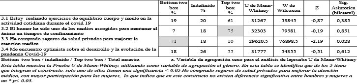Prueba de Mann-Whitney. Constructo factores psicológicos (ejercicio y salud mental).3