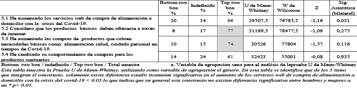 Prueba de Mann-Whitney. Constructo comportamiento en el consumo.5