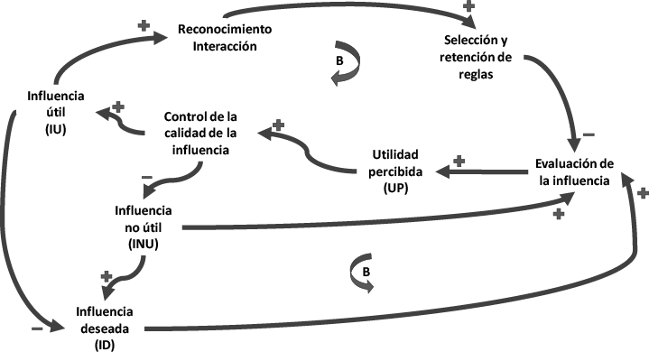 Lo anterior se representa en el diagrama 1. En esta, se exhibe el ‘proceso de selección’ descrito en el cuadro 2, en la cual el seguidor acepta o rechaza la influencia que recibe del líder, en términos de la ‘utilidad’ o ‘no utilidad’ de aquellos mensajes o acciones por los cuales se busca la influencia. En este caso, la influencia será considerada ‘útil’ [IU] cuando su ‘utilidad percibida’ [UP] sea mayor, o incluso igual, a la ‘utilidad deseada’ [UD] de aquello por lo cual se está influenciando; en caso contrario, un proceso de influencia será considerado ‘no útil’ [INU] cuando la UP sea menor a la UD de la influencia que se está recibiendo.