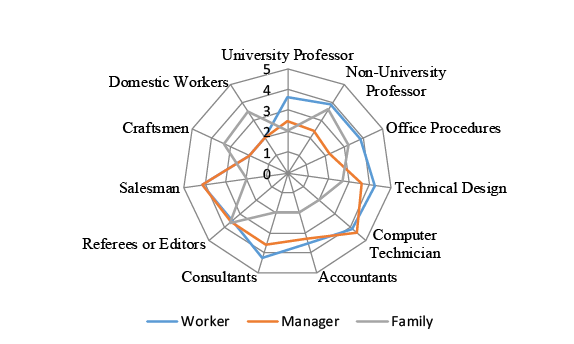 It is also advisable to studying the differences between professions, regions and types of activity. The results of this research in this sense are not conclusive because they show a small sample size for each analysis segment, so in this sense it is considered exploratory research.