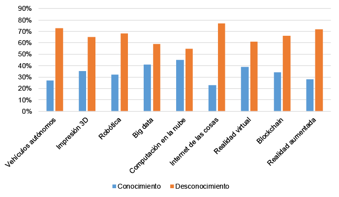 Por otro lado, con respecto al uso de nuevas tecnologías, la gran mayoría desconoce su aplicación, siendo el big data, la computación en la nube y la realidad virtual las más conocidas.