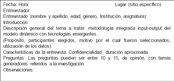 El propósito de las entrevistas fue comprender las perspectivas y experiencias de los docentes de las instituciones objeto de estudio, por lo que se realizó una triangulación mediante tres perspectivas (cuadro 8). Primero, desde la revisión teórica conceptual sobre la metodología integrada input-output del modelo dinámico con tecnologías emergentes en los textos, segundo en los hallazgos de cómo los docentes conciben la aplicación de la metodología integrada y de las tecnologías emergentes en las entrevistas y tercero la perspectiva del investigador.