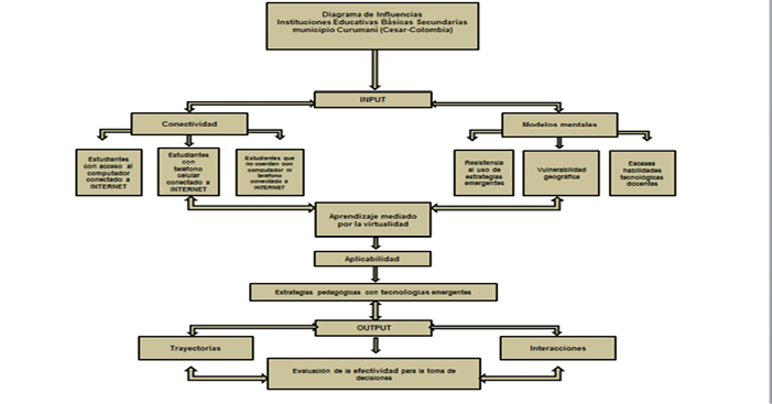 La metodología integrada input-output del modelo dinámico utilizando tecnologías emergentes proporciona información que permite al docente trabajar en una tarea común para compartir la construcción del conocimiento (Echeverry, Quintero y Gutiérrez, 2017). Esta metodología se encuentra en el debate pedagógico actual, alcanzando niveles significativos en la labor de los docentes que promueven acciones basadas en el conectivismo con el apoyo de TIC (González, 2022), pudiendo este hecho considerarse como un inicio prometedor para vencer los obstáculos que no le permiten a los docentes de básica secundaria apropiarse de las TIC con el propósito de organizar contenido curricular, digitalizarlo, implementarlo y traducirlo al contexto real del aprendizaje del estudiante.