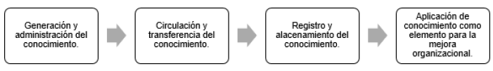 La gestión del conocimiento es un proceso enfocado en identificar, recopilar, almacenar, compartir y utilizar el conocimiento y la experiencia de una organización con el objetivo de mejorar su eficacia y eficiencia en el alcance de sus metas (Porter, 1980; Cole, 1998; Powell, 1998; Davenport y Klahr, 1998; Peluffo y Contreras, 2002; Boude y Luna, 2013; Soto y Barrios, 2015). Para ello, es necesario construir una cultura de aprendizaje continuo y colaborativo dentro de la organización, valorando al conocimiento como un activo de alto interés, funcionando como elemento para la toma de decisiones y solución de problemas (Barragán, 2009).