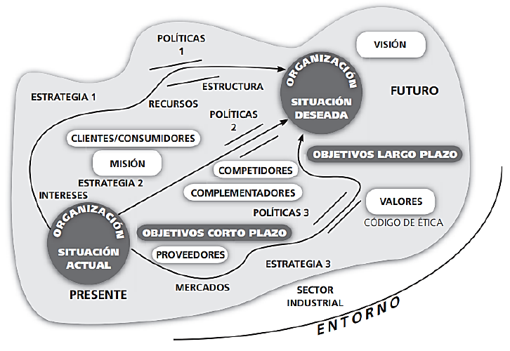 En este sentido, la planificación estratégica muestra la ruta a seguir para alcanzar un futuro exitoso (ilustración 1) apalancando la toma de decisiones y el desarrollo de estrategias en la misión, visión, objetivos organizacionales (Baque et al, 2020).
