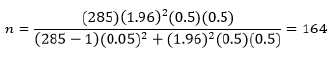 La población fue 285 casos registrados de violencia de género correspondientes al año 2022 en el CEM Puno, a partir de la cual se calculó el tamaño de la muestra considerando la siguiente fórmula: