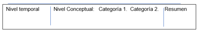 Para finalizar se realizó una categorización, en dos grandes rubros, para el respectivo análisis de los documentos seleccionados. Para el análisis correspondiente se procedió a llenar la matriz analítica de cada artículo académico revisado donde se filtraron a nivel temporal y conceptual; es decir, se realizó el resumen de cada una de las fuentes consultadas, como se muestra en la ilustración 3.