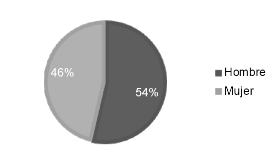 Con relación a los participantes, a continuación, se describen las características de la población bajo estudio. El total de los encuestados fue de 236 respuestas válidas, observándose igualdad de género, correspondiendo un 54% en hombres y 46% mujeres (Gráfico 1).
