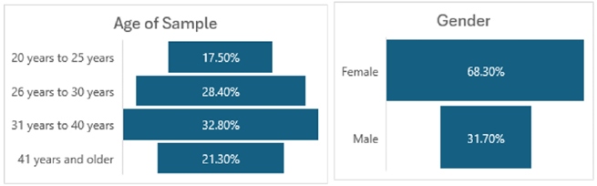 The study was structured in general questions and four dimensions, the results of the general data show that the age range of most of the respondents is 31 to 40 years in 32.8% and 68.3% belong to the female gender (Graph 1).