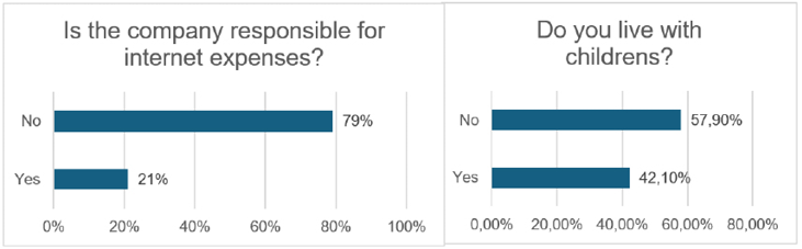 With respect of general data 42. 1% live with children and 79% express that the internet service is not covered by the organization (Graph 2).