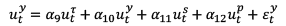 Sea Yt el vector que incluye las variables anteriores, Ut el vector de errores de la forma reducida del VAR y A (L) el polinomio de rezagos, la siguiente ecuación dinámica define el modelo en forma reducida: