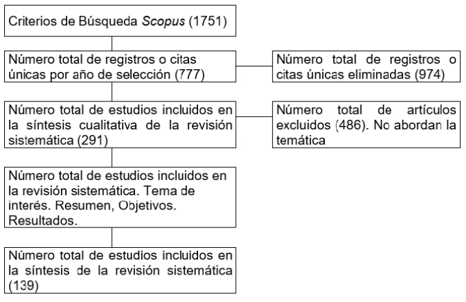 Nota: Flujo de información a través de las diferentes fases de una revisión sistemática (PRISMA) de los criterios de búsqueda en Scopus.