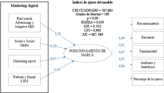 Modelación de la relación de marketing digital y posicionamiento de marca