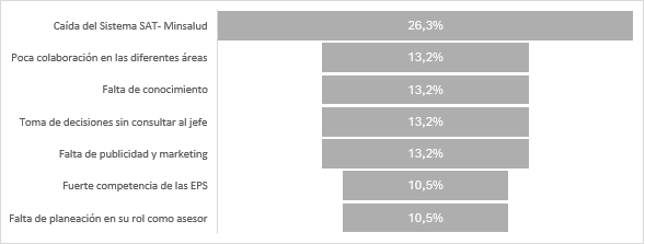 Por otro lado, el gráfico 2 muestra las problemáticas que tienen los asesores comerciales de las EPS con respecto al proceso de afiliación.