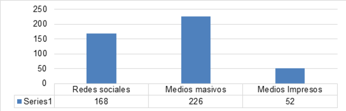 Los resultados arrojados muestran que 168 personas conocieron al candidato por redes sociales, 226 por medios masivos y 52 por los medios impresos.