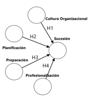 De la relación de la cultura organizacional y la sucesión, Johnson (2019) y Acosta et al. (2019) señalan que la cultura organizacional, junto con los valores familiares y la planificación de la sucesión, influye significativamente en la transición generacional. Muñoz et al. (2020) refuerza esta perspectiva al destacar que la cultura organizacional es esencial en la planificación y éxito del proceso sucesorio, lo que subraya su rol central en la sostenibilidad de las empresas familiares. Por lo que la H1 es: la cultura organizacional incide significativamente en la sucesión de empresas familiares.