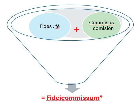 En la ciudad romana, el “fideicommissum” era un encargo basado en la buena fe, honestidad, que se materializaba mediante una instrucción de última voluntad con la cual se encargaba la ejecución de favores en beneficio de un tercero; en cambio, la fiducia se usó para gestionar el encargo, pero entre personas vivas sin expectativas de fallecimiento (Malumián, 2006). En tal sentido, “Fideicommissum” se deriva de la palabra latina “fides”, que significa fe, y del término latino “commissus” = comisión, lo que implicaba la gestión de actividades de confianza, a cambio de un honorario como parte del pago, que también se ve vinculada a elementos de la propiedad, actores clave con objetivos contractuales relevantes (García-Rubio & Rubio-Aragón, 2013; García-Rubio, 2023).