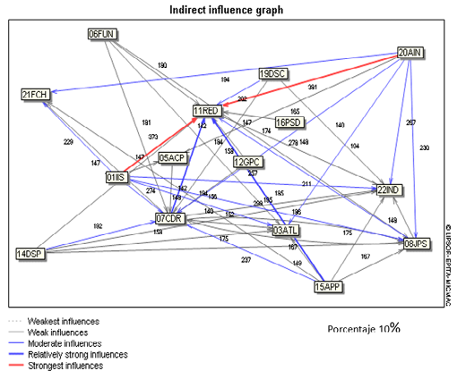 Las relaciones de influencia directa e indirecta entre las variables muestran la complejidad del sistema, en cuanto al cambio de su comportamiento según influencia o dependencia. El análisis de estas relaciones revela la estructura subyacente del sistema y permite comprender cómo los cambios en una variable pueden repercutir en otras, ya sea de manera directa o indirecta a través de una cadena de influencias.