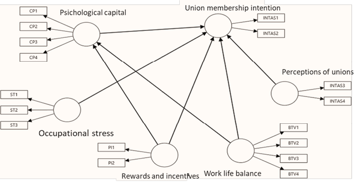 In order to demonstrate the hypotheses proposed in the theoretical framework, a quantitative and causal research approach is developed. This study aims to verify the influence of occupational stress, work-life balance, rewards and incentives, psychological capital, and perceptions of protection offered by unions on the intention of union affiliation among Peruvian professional workers.