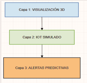 En el diagrama 1 se observa la arquitectura teórica por capas que sustenta la intervención operacional: capa 1: modelado 3D Unity con maquinarias industriales, capa 2: IoT simulada contextualizada y capa 3: modelos ML predictivos para fallos.